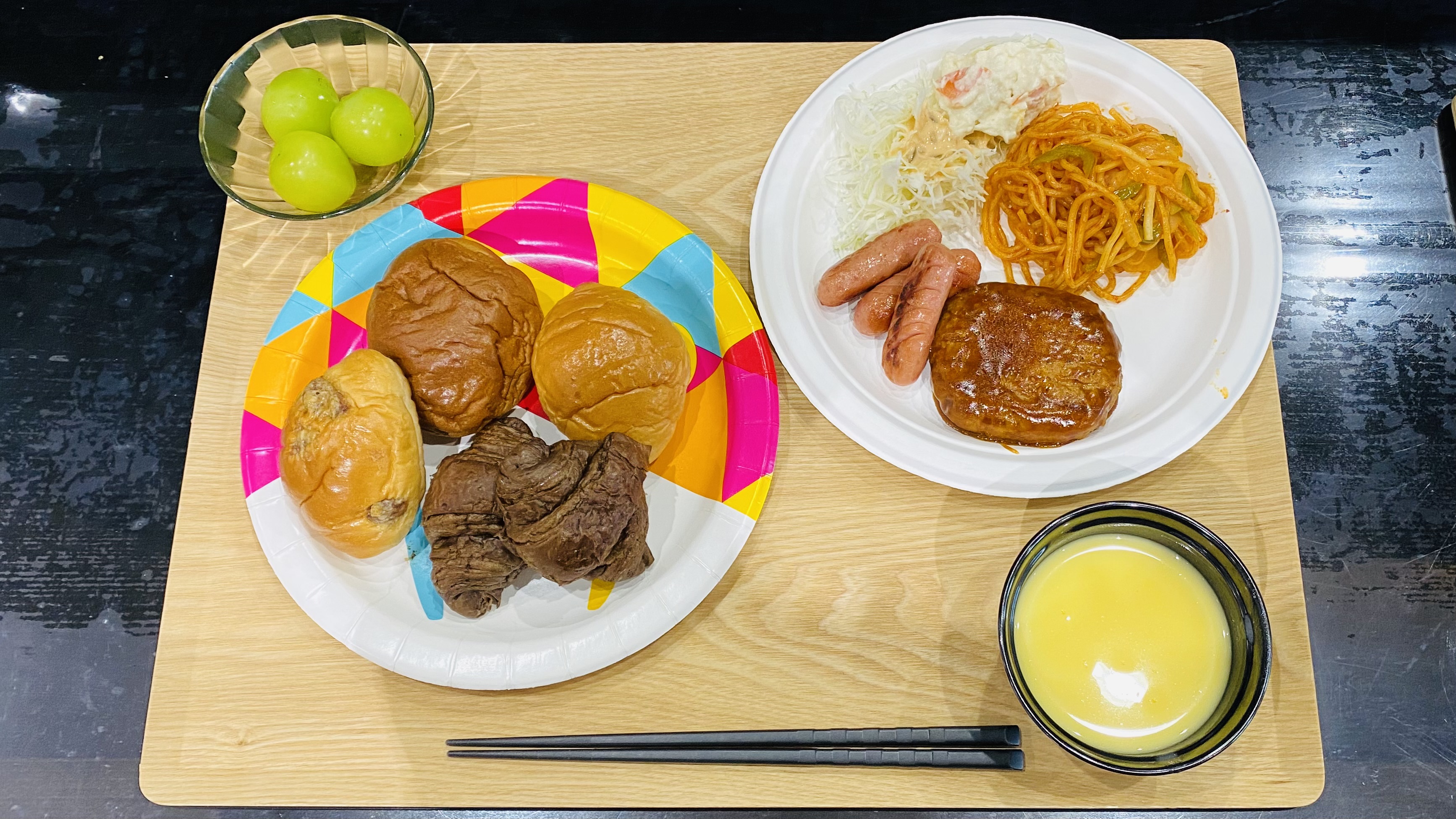 安心院のシャインマスカットをデザート準備にました。「こんなに甘いの初めて食べた」「もっと食べたい」ととても好評でした。