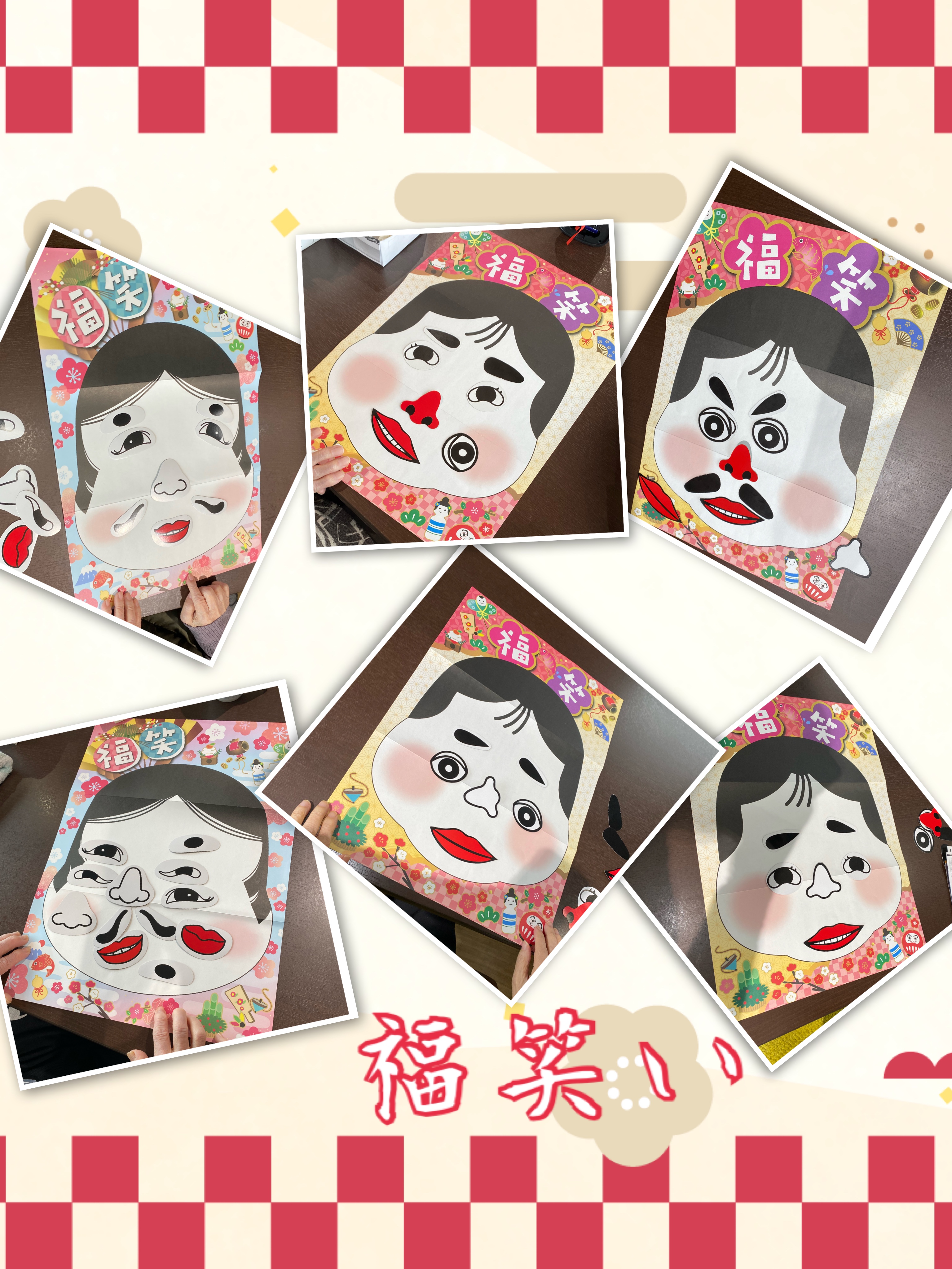 午後からは福笑いをして遊びました。皆さん真剣に取り組まれ時間がかかったためカルタ大会も予定していましたが中止となりました。