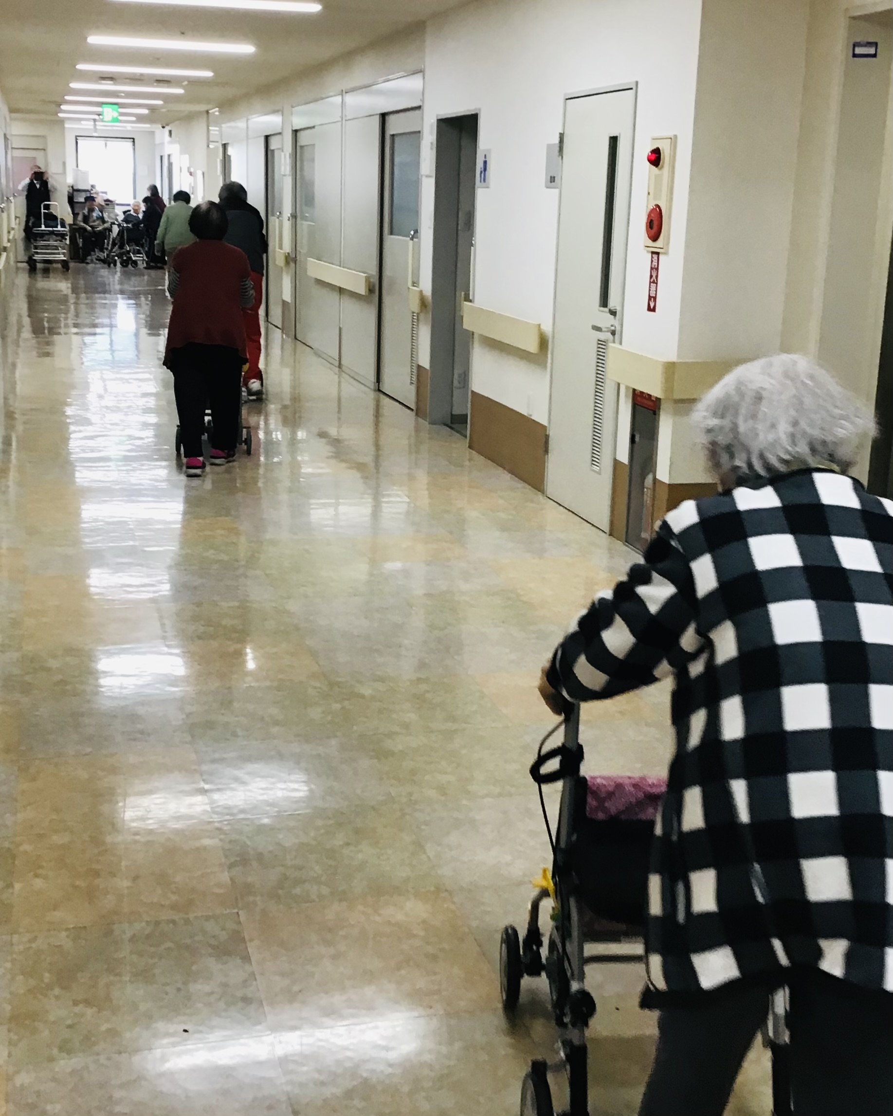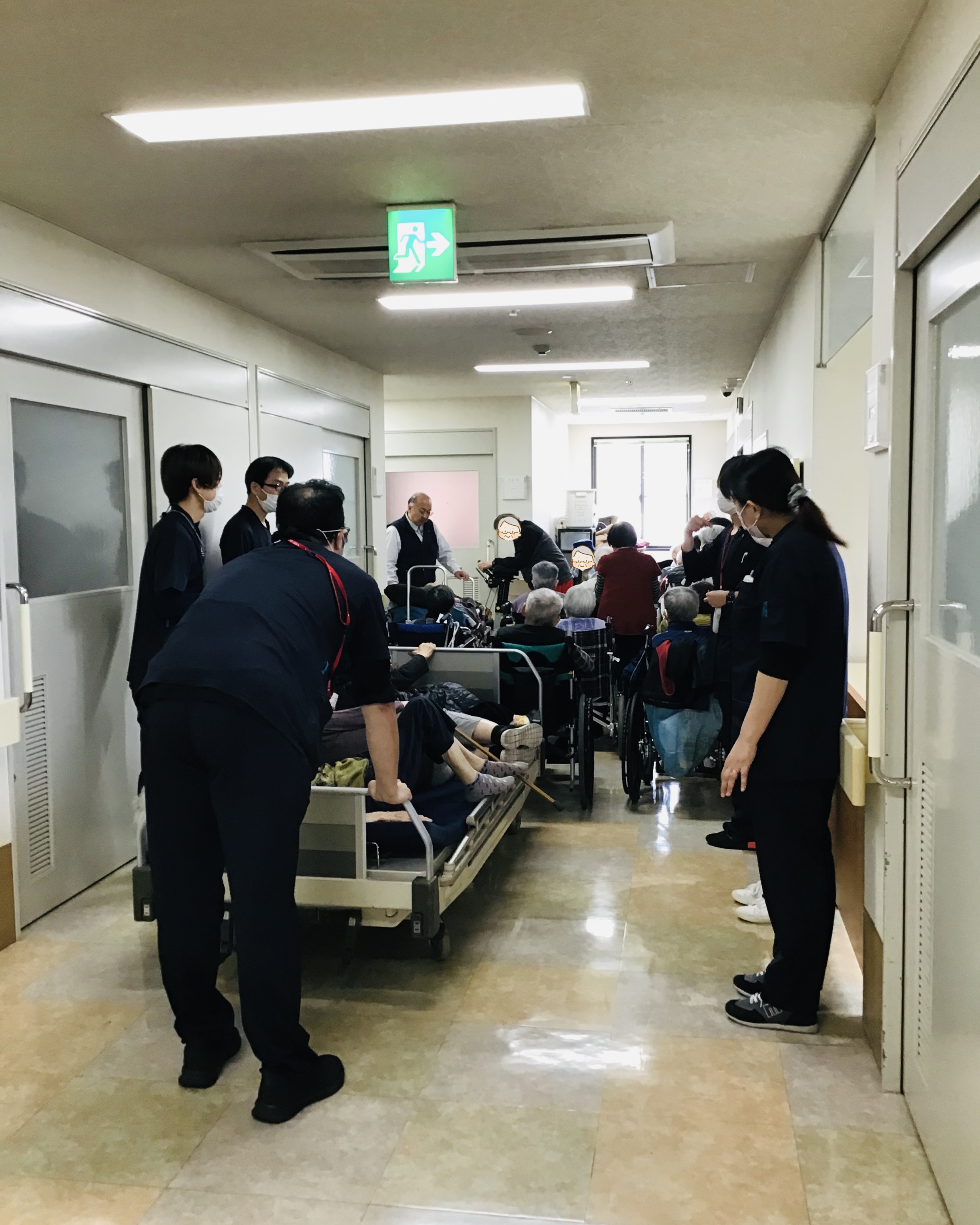 今日は、火災発生を想定した避難訓練を行いましたの。グランドハウスミストでは、万が一の火災に備え定期的に防災訓練を実施しています。 今回の訓練では、施設内での火災発生を想定し職員の通報・初期対応から避難までの流れを確認しました。「火事です!」という声かけのもと迅速に利用者様へ状況を伝え安全確保を最優先に行動しました。歩行に不安のある利用者様には職員が付き添い、全員が落ち着いて避難できるよう対応しています。転倒リスクの高い利用者様は、ベッドに乗せて実際の火事を想定し避難を行いました。