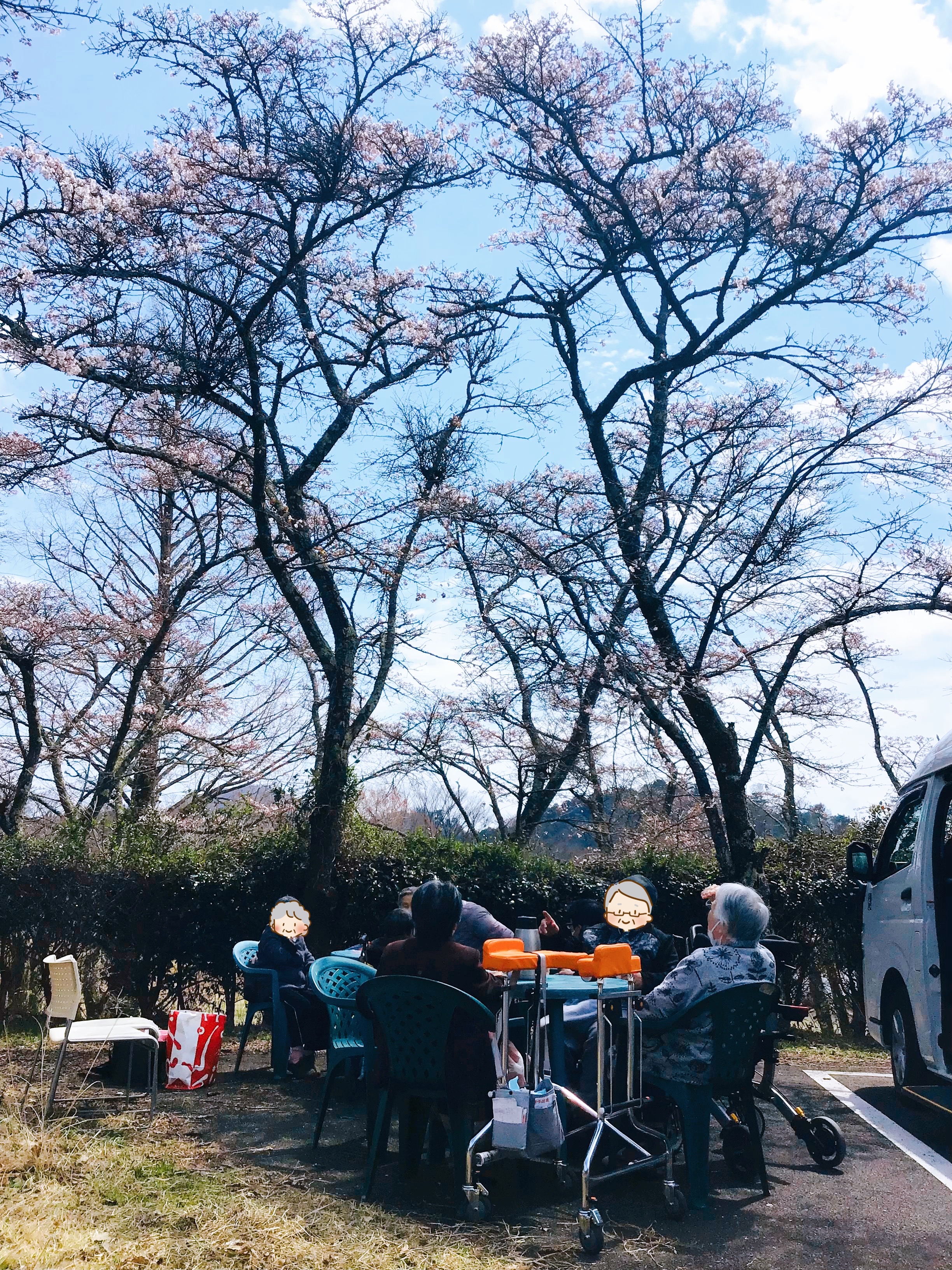 桜を眺めながらお弁当やお菓子を食べゆったりとした時間を過ごしました。 外の空気を感じることで気分転換にもなり、皆さんリラックスされた様子でした。